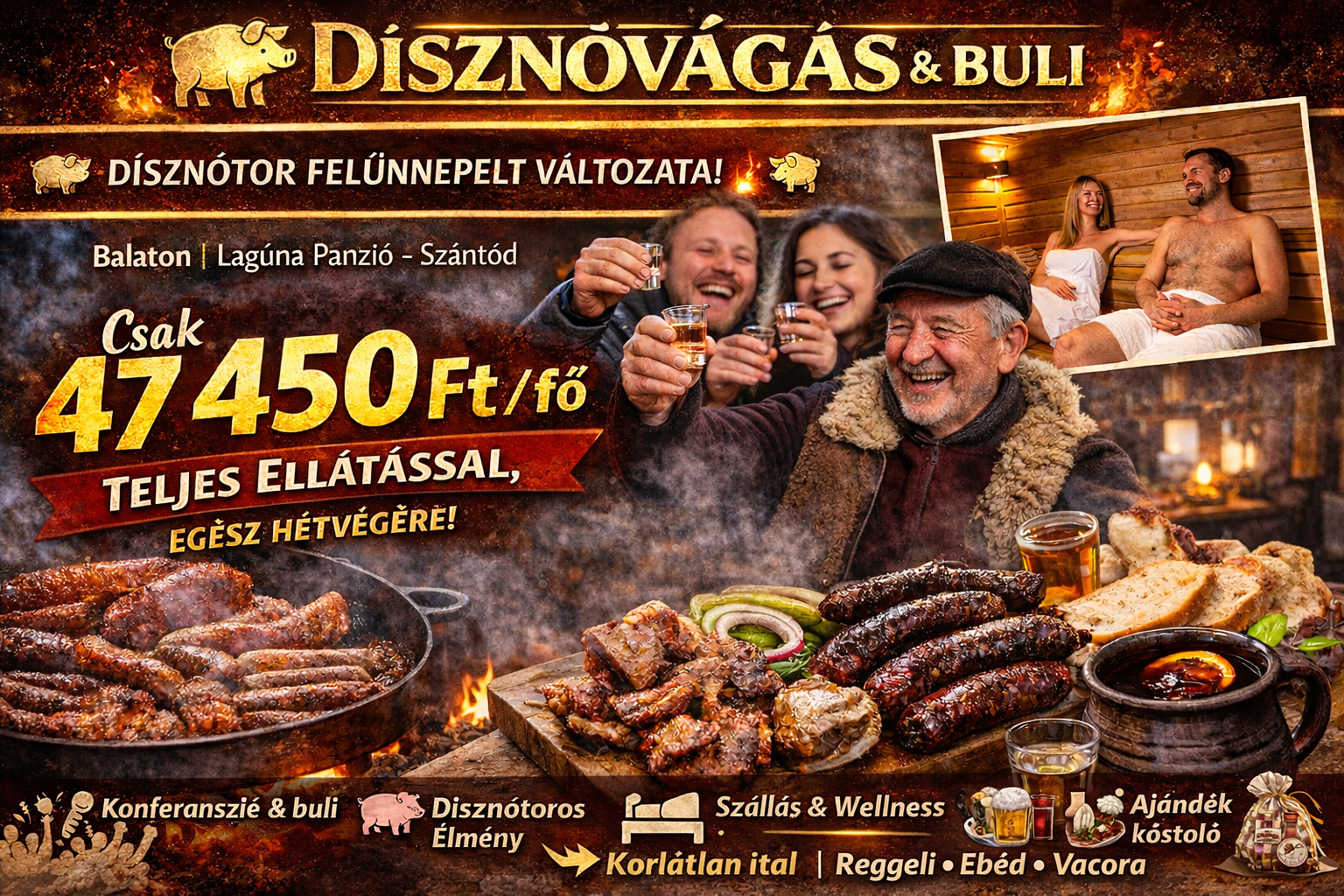 Panziónk ideális helyszínt biztosít kisebb, akár 50 fős konferenciák és csapatépítő rendezvények számára. A közel 3 hektáros terület nemcsak nyugodt környezetet kínál a pihenéshez, hanem remek lehetőséget ad kültéri programok szervezésére is. A környék változatos kikapcsolódási lehetőségeket biztosít, mint például gokartozás, paintball, valamint lovaglási lehetőségek, amelyek garantáltan felejthetetlenné teszik a csapatépítést. Tökéletes választás mindazon cégek és baráti társaságok számára, akik aktív kikapcsolódásra és professzionális rendezvényszervezési lehetőségekre vágynak egy helyen.